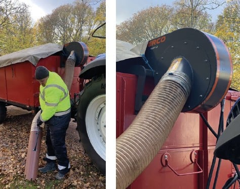 Ett annat alternativ på körning är att montera denna lövblås i redskapsbärarens baklyft i kombination med armklippare med slaghack eller RC häcksax (mulching). Då blåser föraren in resterna direkt vid häckklippning vilket gör arbetet väldigt tidseffektivt.